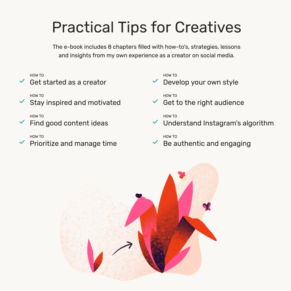 The e-book includes 8 chapters filled with how-to's, strategies, lessons, and insights from my own experience as a creator on social media.
